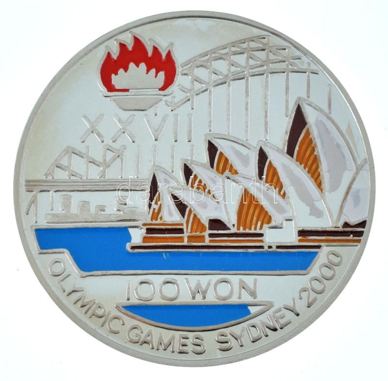 North Korea 1997. 100 Won Ag "Sydney Olympics 2000 - Opera House" multicolor painted C:PP