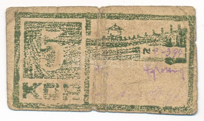 Leírás: Orosz Birodalom / Szpasszkoje hadifogolytábor ~1914-1918. 5k tábori szükségpénz "Z-399" sorszámmal T:VG /