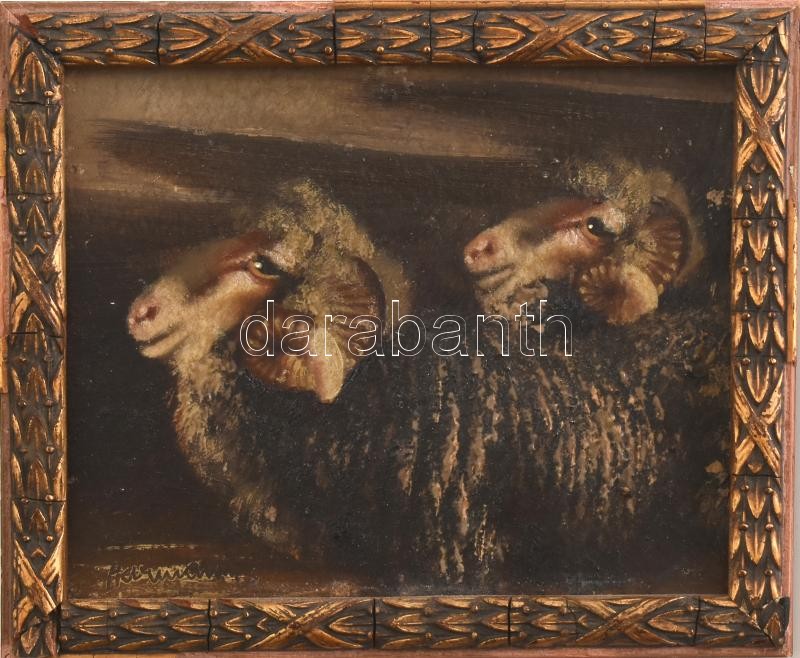 Leírás: Harmann Béla (?-?): Kosok. Olaj, karton. Jelzett. Dekoratív, kissé sérült fakeretben, 10,5×13 cm