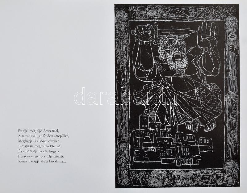 Kass János (1927-2010): Mózes. 15 db réznyomat, papír. Számozott (62/385) és a művész által aláírt az egyik kísérőlapon. Kissé vetemedett, kísérőlap kissé foltos.Lapméret: 35×44 cm
