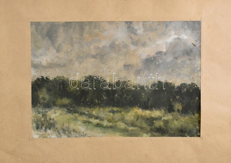 Leírás: Schéner Mihály (1923-2009): Tájkép. Akvarell, papír, jelzett. 24x34 cm