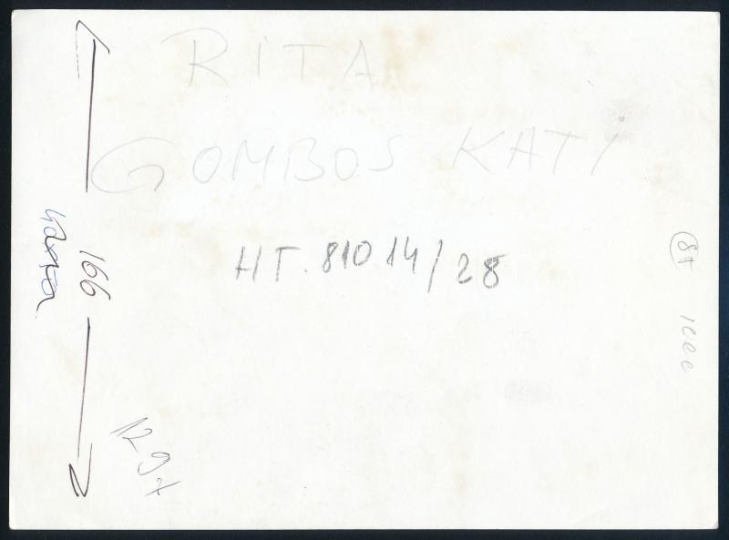 Leírás: Gombos Kati színésznő, hátoldalon feliratozott sajtófotó, 18×13 cm