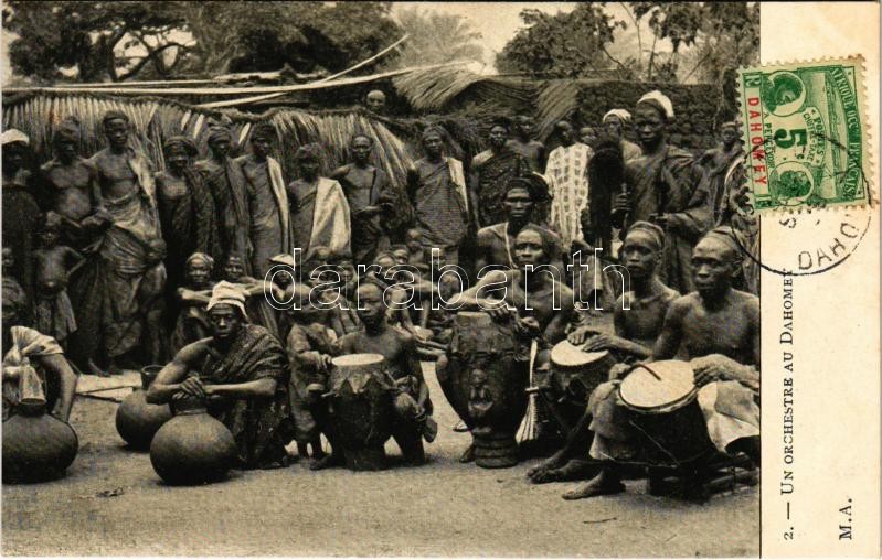 Dahomey, Un Orchestre au Dahomey / African folklore, orchestra https://www.darabanth.com/hu/420-Gyorsarveres/420.0/Kepeslapok/Benin-Dahomey~1000068/Dahomey-Un-Orchestre-au-Dahomey-African-folklore-orchestra~II2660267