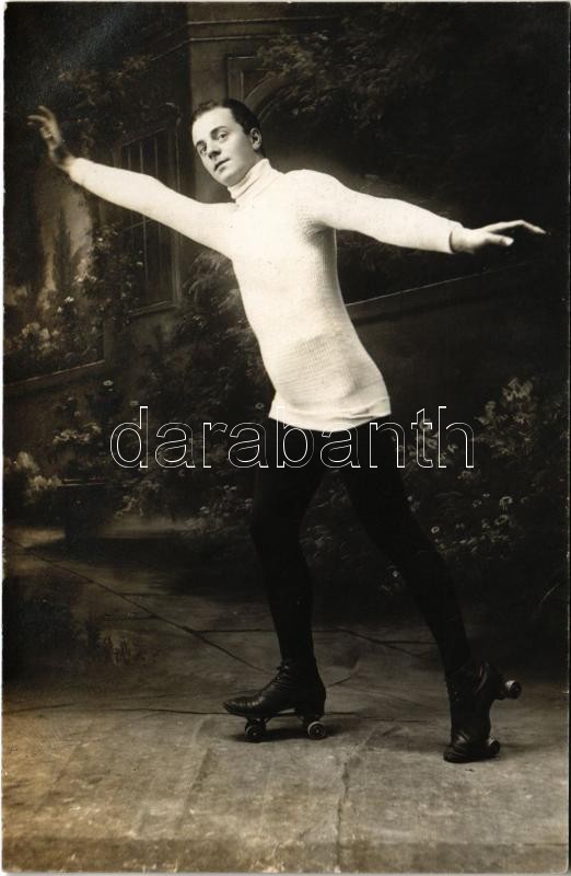 Man with roller skates. Ward's Day & Electric Light Studios. ... https://www.darabanth.com/hu/420-Gyorsarveres/420.0/Kepeslapok/Cirkusz~1000019/Man-with-roller-skates-Wards-Day-Electric-Light-Studios-photo~II2659273