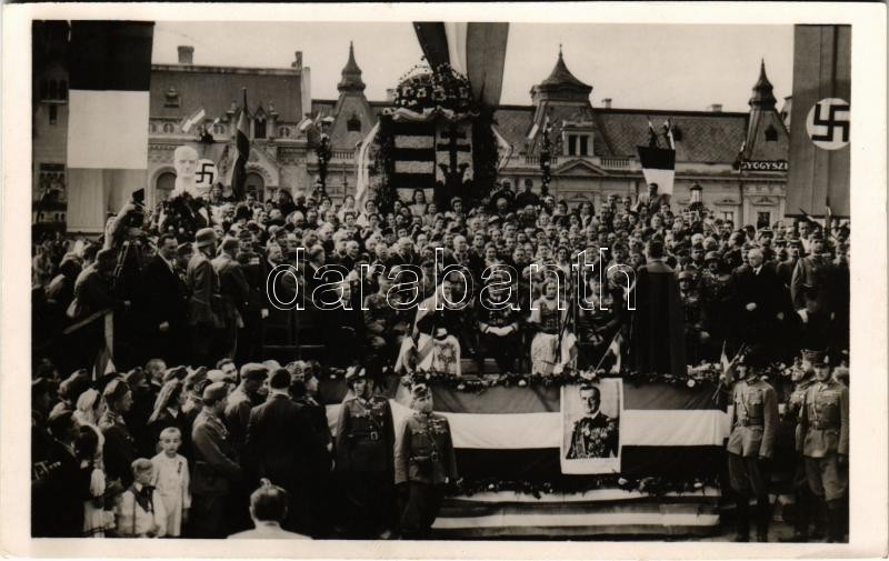 1940 Nagyvárad, Oradea; bevonulás, Horthy Miklós és felesége Purgly Magdolna / entry of the Hungarian troops, Horthy and his wife + "1940 Nagyvárad visszatért" So. Stpl