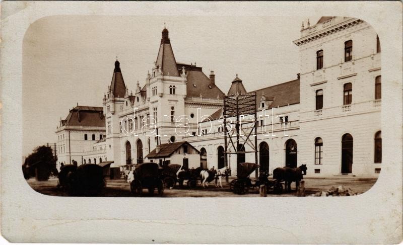 Leírás: Temesvár, Timisoara; Józsefváros, Vasúti indóház, lovas hintók / Iosefin, railway station, horse chariots. photo (EM)