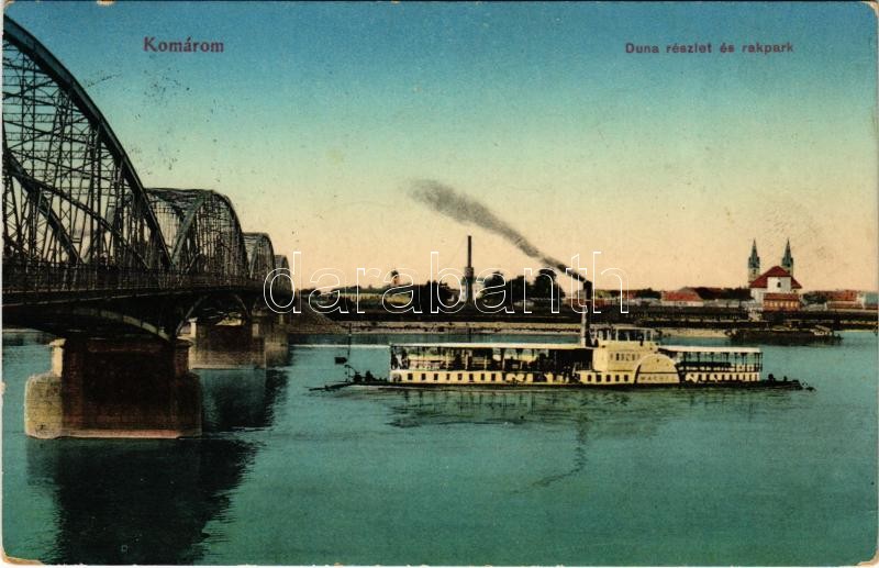 1911 Komárom, Komárnó; Duna és rakpark, WACHAU lapátkerekes ingahajó /... https://www.darabanth.com/hu/420-Gyorsarveres/420.0/Kepeslapok/Felvidek~1000006/1911-Komarom-Komarno-Duna-es-rakpark-WACHAU-lapatkerekes-ingahajo-Danube-bridge-paseng~II2663491