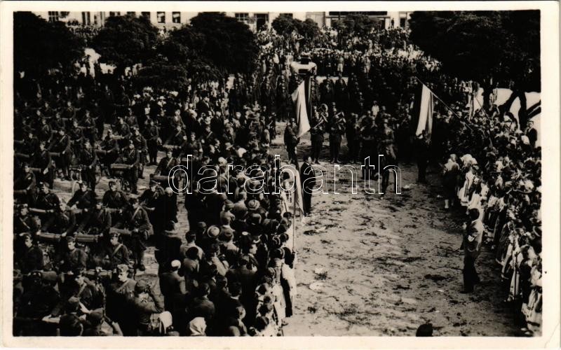 1938 Ipolyság, Sahy; bevonulás / entry of the Hungarian troops + "... https://www.darabanth.com/hu/420-Gyorsarveres/420.0/Kepeslapok/Felvidek~1000006/1938-Ipolysag-Sahy-bevonulas-entry-of-the-Hungarian-troops-plus-1938-Az-elso-visszatert-magya~II2662629