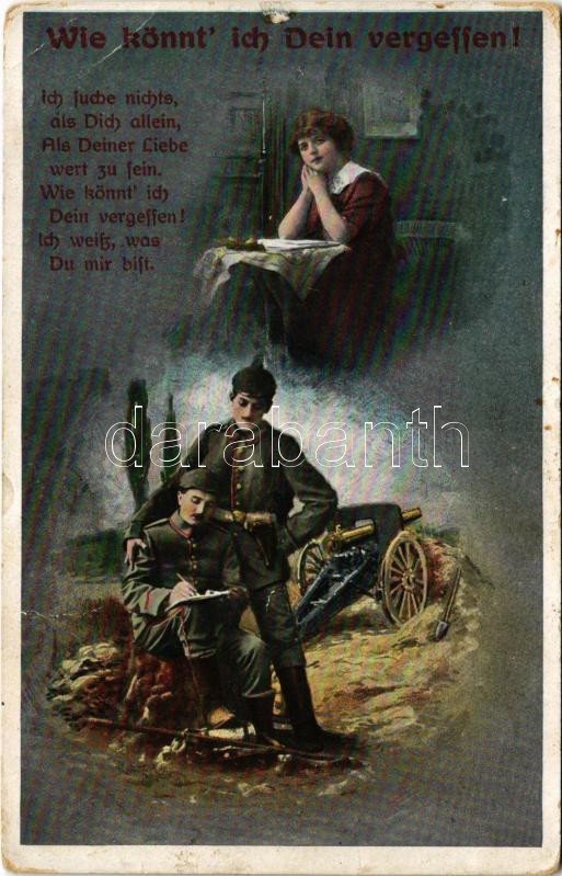 Leírás: 1915 Wie könnt' ich Dein vergessen! / WWI German military art postcard, romantic couple. L&P 5675. (EB)