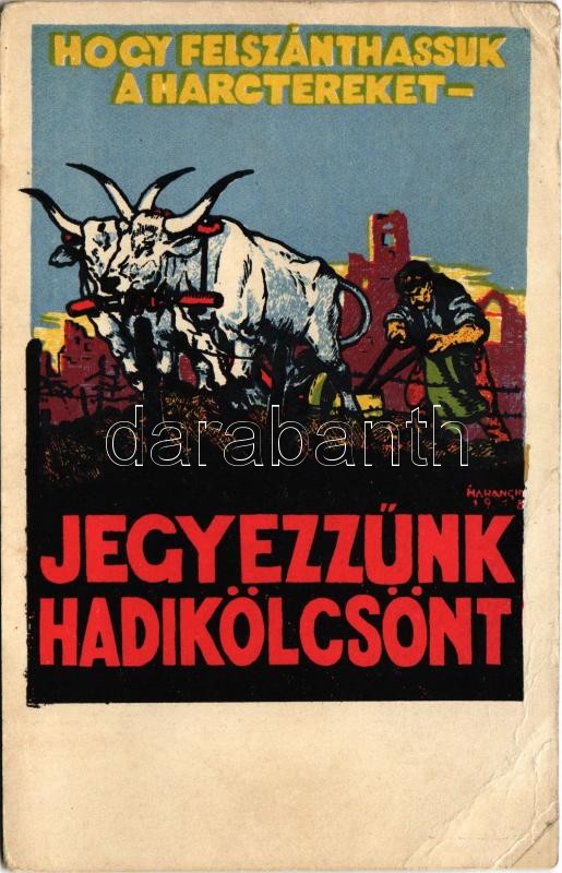 Leírás: Hogy felszánthassuk a harctereket, jegyezzünk hadikölcsönt! / WWI Austro-Hungarian K.u.K. military war loan propaganda art postcard s: Haranghy (EB)
