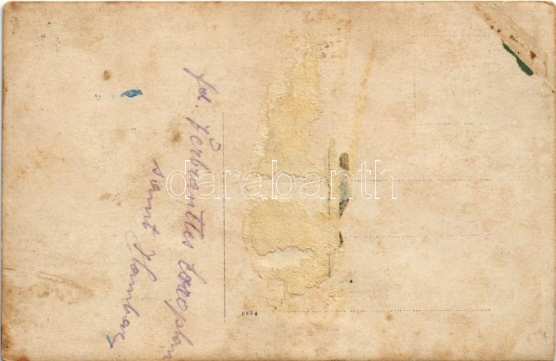 Leírás: Verbranntes Aeroplan / WWI Austro-Hungarian K.u.K. military, destroyed aircraft. photo (ragasztónyom / glue mark)