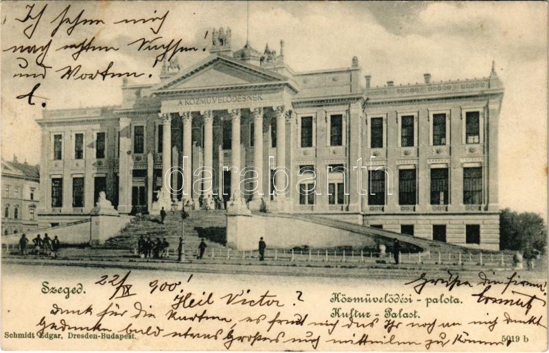 1900 Szeged, Közművelődési palota. Schmidt Edgar (EK) https://www.darabanth.com/hu/420-Gyorsarveres/420.0/Kepeslapok/Magyarorszag~1000004/1900-Szeged-Kozmuvelodesi-palota-Schmidt-Edgar-EK~II2663817