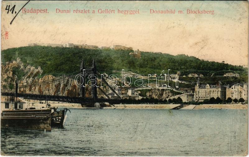 1907 Budapest, Erzsébet híd, Dunai részlet a Gellértheggyel. Taussig A... https://www.darabanth.com/hu/420-Gyorsarveres/420.0/Kepeslapok/Magyarorszag~1000004/1907-Budapest-Erzsebet-hid-Dunai-reszlet-a-Gellertheggyel-Taussig-A-7366-EK~II2657447