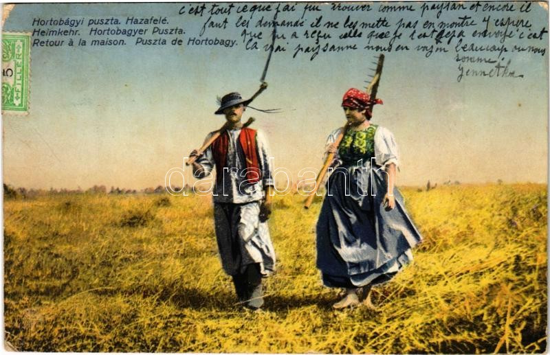 1912 Hortobágy, Hazafelé a pusztán, magyar folklór (EK) https://www.darabanth.com/hu/420-Gyorsarveres/420.0/Kepeslapok/Magyarorszag~1000004/1912-Hortobagy-Hazafele-a-pusztan-magyar-folklor-EK~II2657433