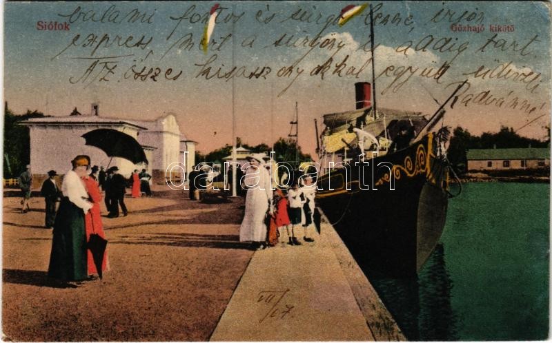 1918 Siófok, Gőzhajó kikötő (r) https://www.darabanth.com/hu/420-Gyorsarveres/420.0/Kepeslapok/Magyarorszag~1000004/1918-Siofok-Gozhajo-kikoto-r~II2660208