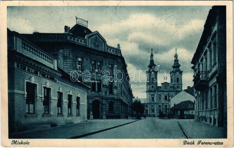 1935 Miskolc, Deák Ferenc utca, M. kir. állami főreáliskola (EK) https://www.darabanth.com/hu/420-Gyorsarveres/420.0/Kepeslapok/Magyarorszag~1000004/1935-Miskolc-Deak-Ferenc-utca-M-kir-allami-forealiskola-EK~II2656835