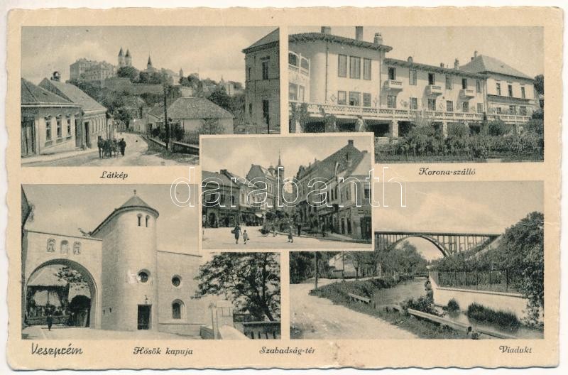 1941 Veszprém, látkép, Hősök kapuja, Viadukt, Korona szálló, Szabadság... https://www.darabanth.com/hu/420-Gyorsarveres/420.0/Kepeslapok/Magyarorszag~1000004/1941-Veszprem-latkep-Hosok-kapuja-Viadukt-Korona-szallo-Szabadsag-ter-Rb~II2640542