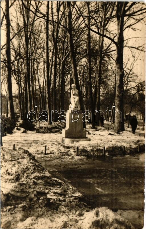 Budapest XIV. Városliget, "Térdelő lány" szobor télen. photo https://www.darabanth.com/hu/420-Gyorsarveres/420.0/Kepeslapok/Magyarorszag~1000004/Budapest-XIV-Varosliget-Terdelo-lany-szobor-telen-photo~II2652801