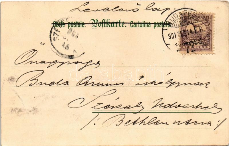 Leírás: 1901 "Unterm Monde" Kunstverlag Rafael Neuber Wien Serie 40. Floral, litho s: E. Döcker jun. (EK)