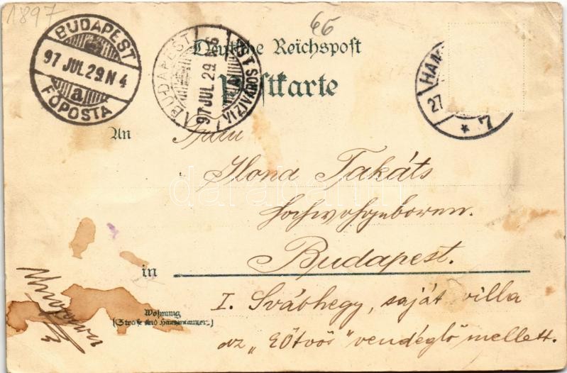 Leírás: 1897 (Vorläufer!) Hamburg, Mondnacht auf der Alster / moonlit night, bridge. litho (fl)