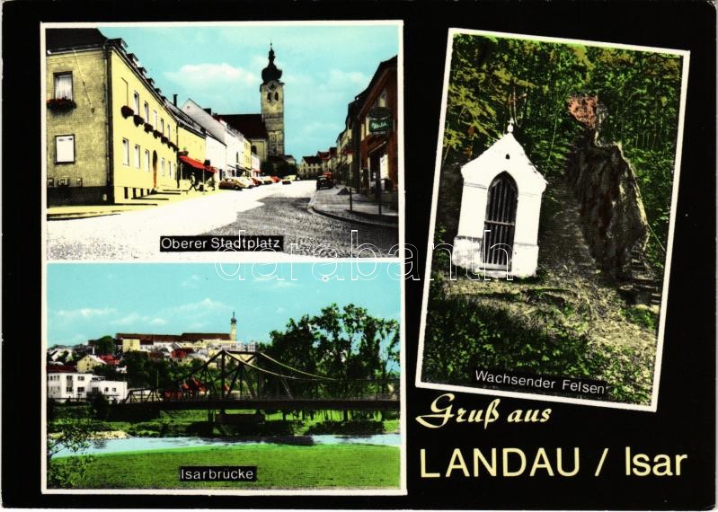Landau, Oberer Stadtplatz, Wachsender Felsen, Isarbrücke https://www.darabanth.com/hu/420-Gyorsarveres/420.0/Kepeslapok/Nemetorszag~1000105/Landau-Oberer-Stadtplatz-Wachsender-Felsen-Isarbrucke~II2660934