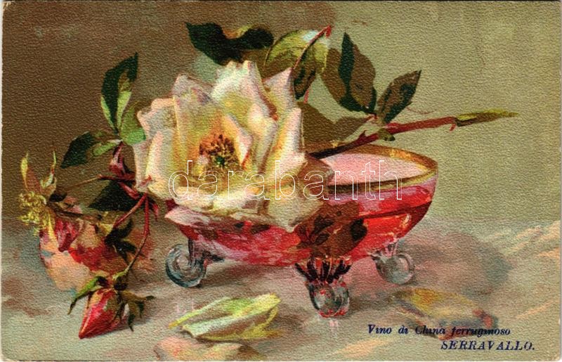 Serravallo Kína bora vassal, a vért megújítja, az életerőt fokozza, az étvágyat gerjeszti, az idegeket erősíti / Vino di China ferruginoso J. Serravallo's Tonic Trieste / Tonic wine advertisement (EK)