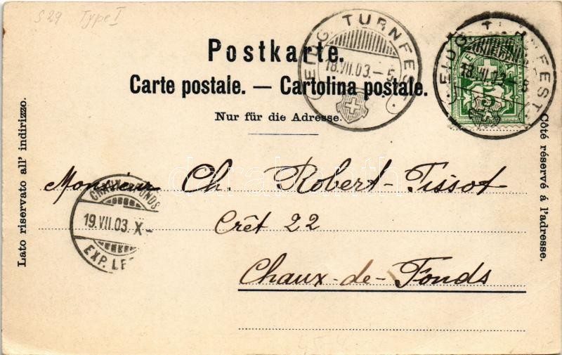 Leírás: 1903 Offizielle Postkarte Eidgen Turnfest Zürich 1903 / Gymnastics festival in Zurich. Art Nouveau, litho (EB)