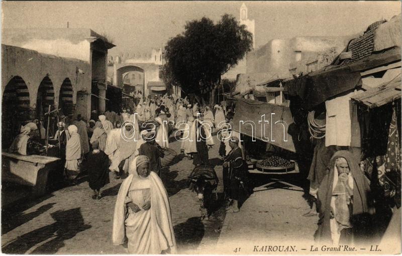 Kairouan, La Grand Rue / streets, shops, market https://www.darabanth.com/hu/420-Gyorsarveres/420.0/Kepeslapok/Tunezia~1000125/Kairouan-La-Grand-Rue-streets-shops-market~II2662808
