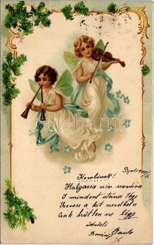 1900 Angyalos üdvözlőlap / Greeting with angels. Art Nouveau, floral, ... https://www.darabanth.com/hu/420-Gyorsarveres/420.0/Kepeslapok/Udvozlolapok-Unnepek~1000056/1900-Angyalos-udvozlolap-Greeting-with-angels-Art-Nouveau-floral-litho~II2662955