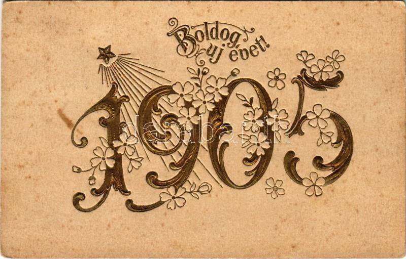 Leírás: 1905 Boldog Újévet! / New Year greeting art postcard. Emb. golden litho (fl)