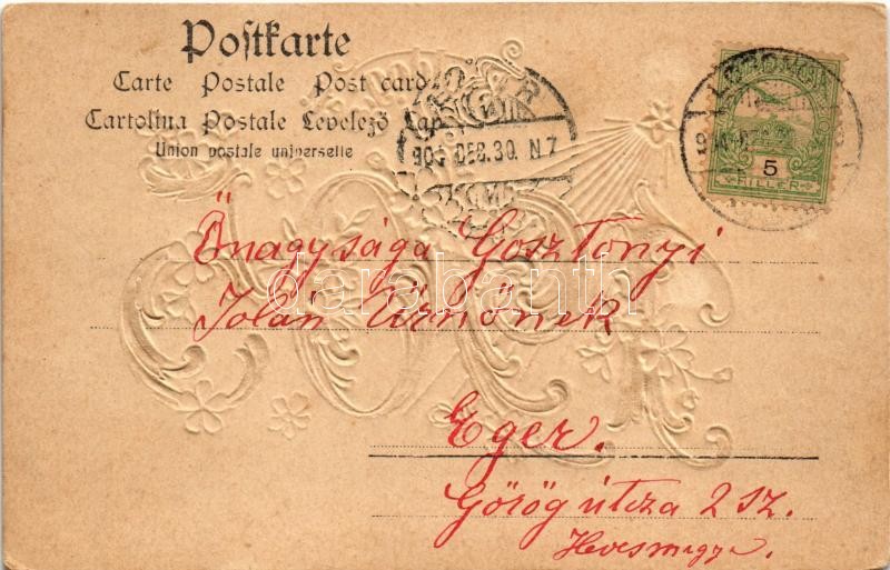 1905 Boldog Újévet! / New Year greeting art postcard. Emb. golden lith... https://www.darabanth.com/hu/420-Gyorsarveres/420.0/Kepeslapok/Udvozlolapok-Unnepek~1000056/1905-Boldog-Ujevet-New-Year-greeting-art-postcard-Emb-golden-litho-fl~II2658430