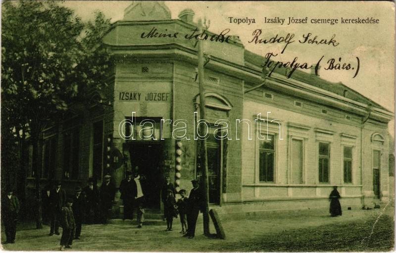 1918 Topolya, Bácstopolya, Backa Topola; Izsáky József üzlete és saját... https://www.darabanth.com/hu/420-Gyorsarveres/420.0/Kepeslapok/Vajdasag~1000009/1918-Topolya-Bacstopolya-Backa-Topola-Izsaky-Jozsef-uzlete-es-sajat-kiadasa-publishers-~II2626656