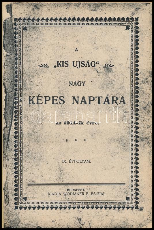 A Kis Újság nagy képes naptára az 1914-ik évre. IX.évfolyam, Budapest,... https://www.darabanth.com/hu/420-Gyorsarveres/420.0/Konyvek/Konyvek-Egyeb-ritkasagok~1500022/A-Kis-Ujsag-nagy-kepes-naptara-az-1914-ik-evre-IXevfolyam-Budapest-kiadja-Wodianer-F-es-f~II2635624
