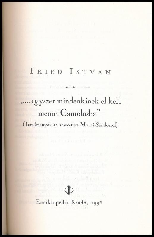 Fried István: "...egyszer mindenkinek el kell menni Canudosba." (Tanulmányok az ismeretlen Márai Sándorról.) Bp., 1998., Enciklopédia Kiadó. Kiadói papírkötés.