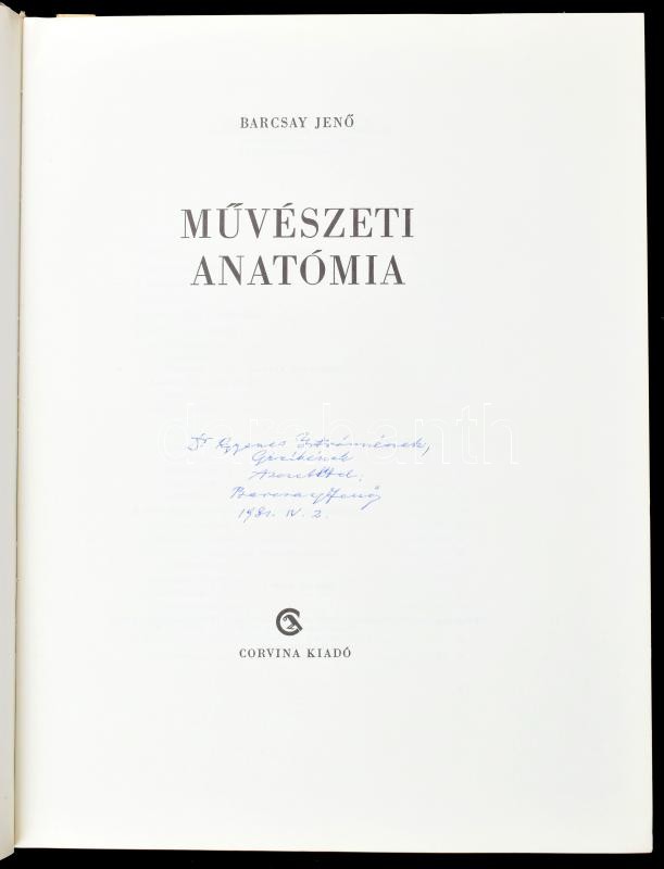 Barcsay Jenő: Művészet anatómiája. Barcsay Jenő (1900-1988) festőművész által DEDIKÁLT! Budapest, 1980, Corvina. Nyolcadik kiadás. Kiadói egészvászon kötésben, kiadói sérült és ragasztott papír védőborítóval.