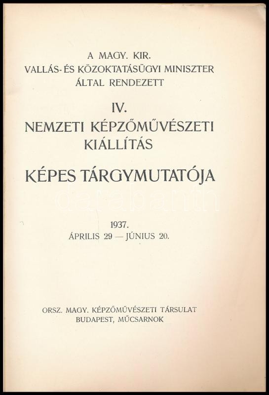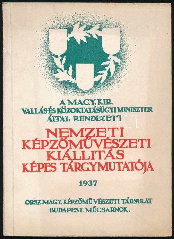 Nemzeti Képzőművészeti Kiállítás Képes Tárgymutatója. Budapest, 1937, Országos Magyar Képzőművészeti Társulat. Fekete-fehér képekkel, többek közt Aba-Novák Vilmos, Bernáth Aurél, Egry József, Fényes Adolf, Galtz Oszkár, Márffy Ödön, Molnár C. Pál, Patkó Károly, Szőnyi István műveinek reprodukcióival illusztrált. Kiadói papírkötésben, borító szélein apró sérülésekkel.