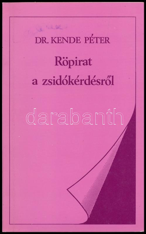 Kende Péter: Röpirat a zsidókérdésről. Bp., 1989, Magvető. Kiadói papí... https://www.darabanth.com/hu/420-Gyorsarveres/420.0/Konyvek/Konyvek-Judaika~1500017/Kende-Peter-Ropirat-a-zsidokerdesrol-Bp-1989-Magveto-Kiadoi-papirkotesben-jo-all~II2616628