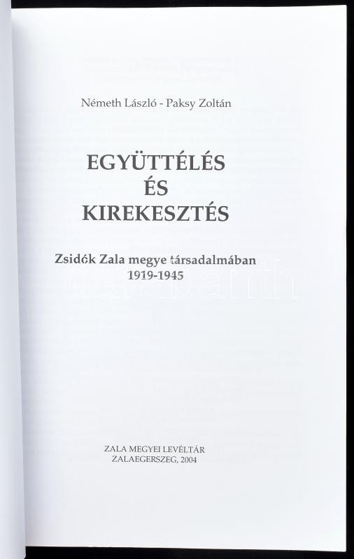 Németh László-Paksy Zoltán: Együttélés és kirekesztés. Zsidók Zala megye társadalmában. 1919-1945. Zalai Gyűjtemény 58. Zalaegerszeg, 2004., Zala Megyei Levéltár. Kiadói papírkötés.