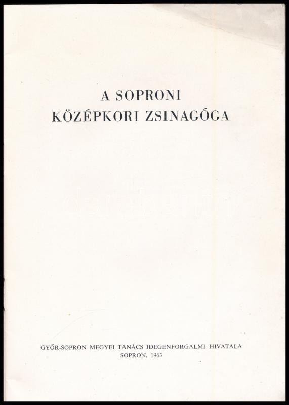 Scheiber Sándor: A soproni középkori zsinagóga. Sopron, 1963., "GyÅ‘r-Sopron M. Tanács Idegenforgalmi Hivatala", 31+1 p. Fekete-fehér szövegközti fotókkal illusztrált. Kiadói papÃrkötés.