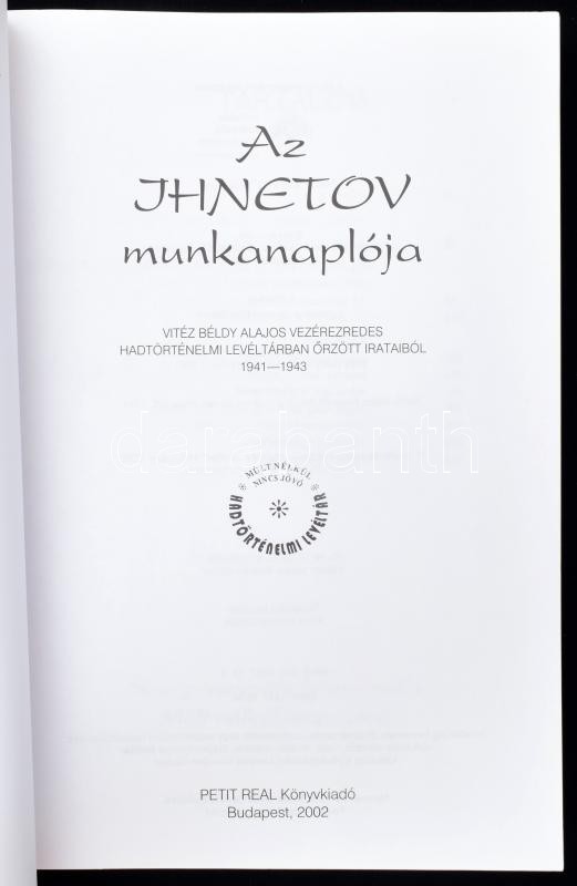 Leírás: Az IHNETOV munkanaplója. Vitéz Béldy Alajos vezérezredes hadtörténelmi levéltárban őrzött irataiból. 1941-1943. Hadtörténelmi Levéltári Kiadványok. Bp., 2002, Petit Real. Kiadói papírkötés, jó állapotban.