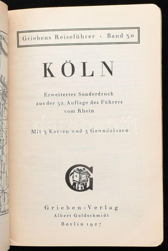 Griebens Reiseführer útikönyvek, 8 kötet: Köln; Köln und Umgebung; Wintersport in Tirol; Karlsbad und Umgebungen; Kiel und Umgebung; Karlsbad und Umgebungen (Goldschmidts Reisebücher); Säschische Schweiz; Genua. Berlin, 1890-1932, Albert Goldschmidt. Kihajtható térképekkel. Német nyelven. Kiadói papírkötés, vegyes, kissé viseltes, dohos állapotban, intézményi bélyegzőkkel.
