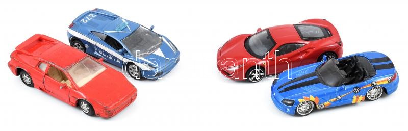 Leírás: 4db játékautó, fém, kopásnyomokkal, h: 11 cm (Burago, Amercom, Maisto)