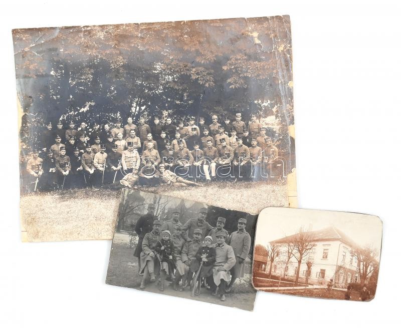 Leírás: 1916 A cs. és kir. 60. egri gyalogezred pótzászlóaljának tuisztikara Kutna-Horában névsor, tablókép 25x20 cm + fotók a táborból