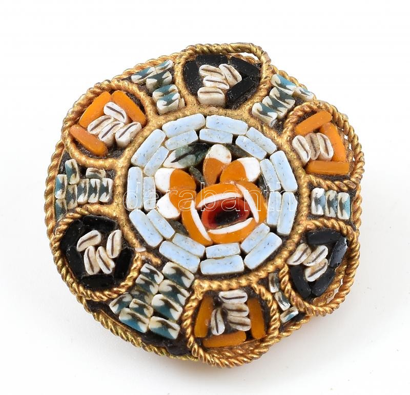 Muránói mikromozaikos bross, kopott, d:2,5cm https://www.darabanth.com/hu/420-Gyorsarveres/420.0/Mutargy-papirregiseg-egyeb/Mutargyak-antikvitas~500008/Muranoi-mikromozaikos-bross-kopott-d2-5cm~II2657751