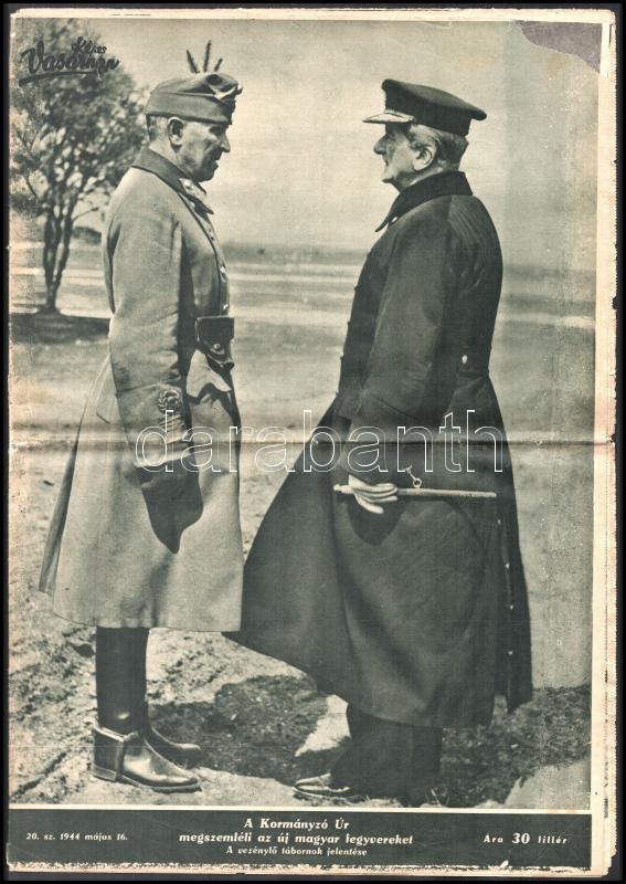 1933-1944 Vegyes újság tétel, 2 címlapján Horthy Miklóssal, a 3. újságban 'A legfelsőbb hadúr' című írással, benne Horthy Miklós fekete-fehér fotóival. Új Idők, 1939. jún. 18.; Pesti Hírlap 1933. ápr. 16., 1944. május 16.