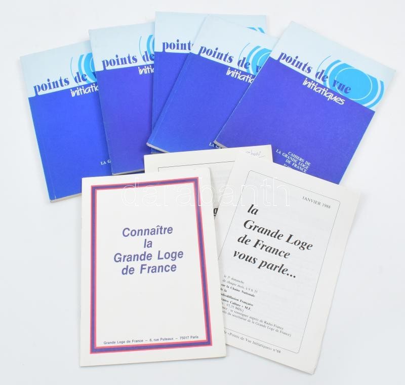 8 db francia nyelvű kiadvány: Points de vue initiatiques, 1987-1989, 5 füzet + Connaitre la Grande Log de France + La Grande Loge de France vous parle... 1986-1988, két ismertető prospektus