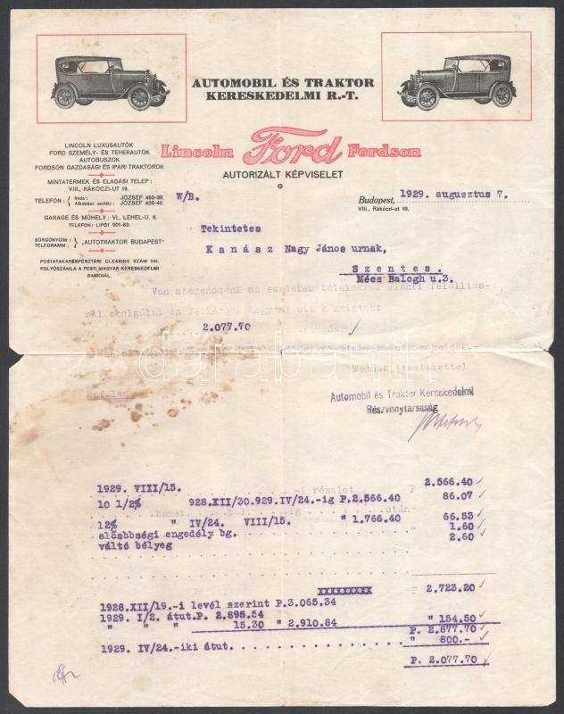 1928-1929 3 db fejléces 'Lincoln Ford Fordson', Automobil és... https://www.darabanth.com/hu/420-Gyorsarveres/420.0/Mutargy-papirregiseg-egyeb/Okmanyok~500018/1928-1929-3-db-fejleces-Lincoln-Ford-Fordson-Automobil-es-Traktor-Kereskedelmi-Rt-szamla-haj~II2664985