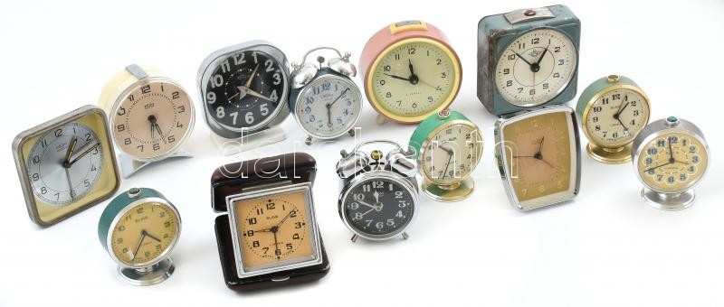 Leírás: Vekker / ébresztőóra gyűjtemény, mechanikusan teljesen felújított, (Slava, Mom,) olajozva, perselyezve. 13db