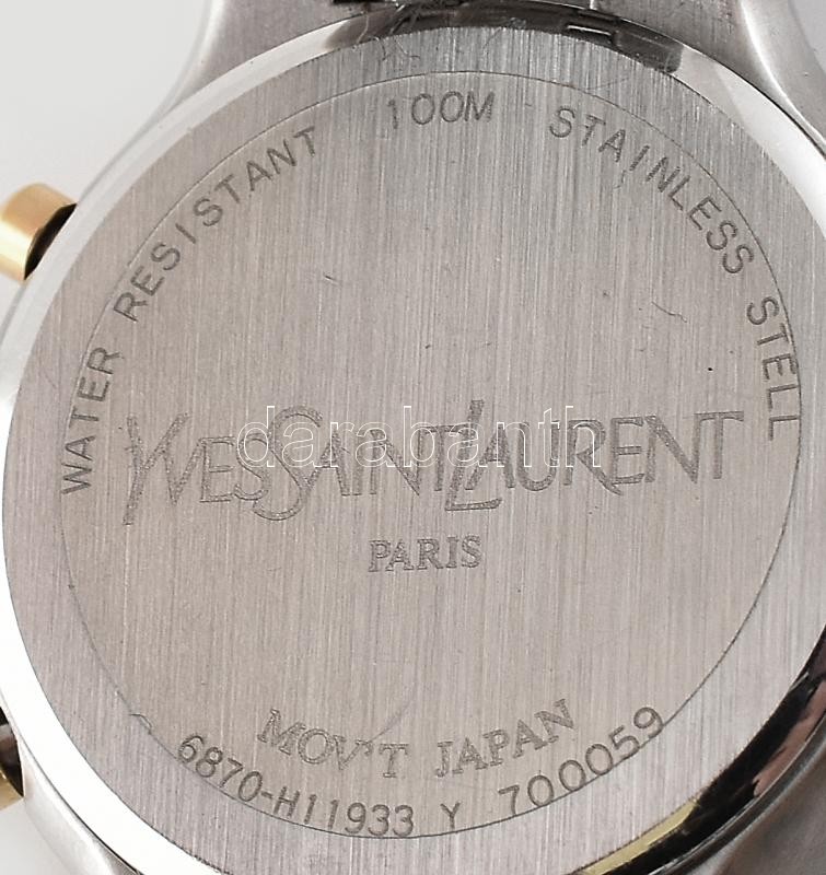 Leírás: Yves Saint Laurent alarm chronograph férfi kvarc óra. Működő, jó állapotban, elemmel, fém szíjjal d:35mm