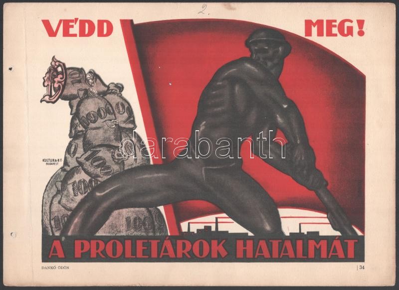 Dankó, Ödön (1889-1958): "Védd meg a proletárok hatalmát!", ... https://www.darabanth.com/hu/420-Gyorsarveres/420.0/Mutargy-papirregiseg-egyeb/Plakat~1500003/Danko-Odon-1889-1958-Vedd-meg-a-proletarok-hatalmat-reprint-plakat-lyukasztassal-t~II2657236